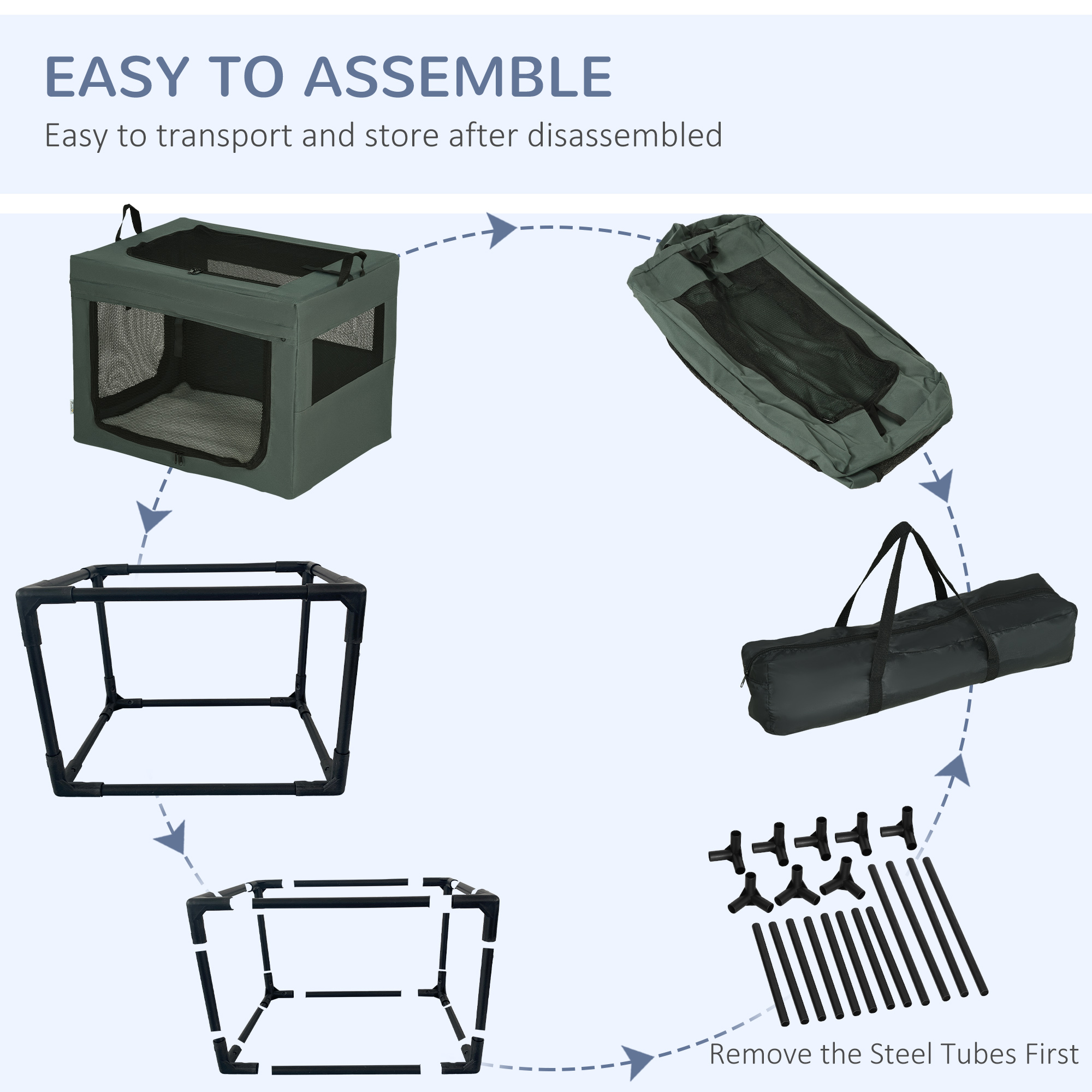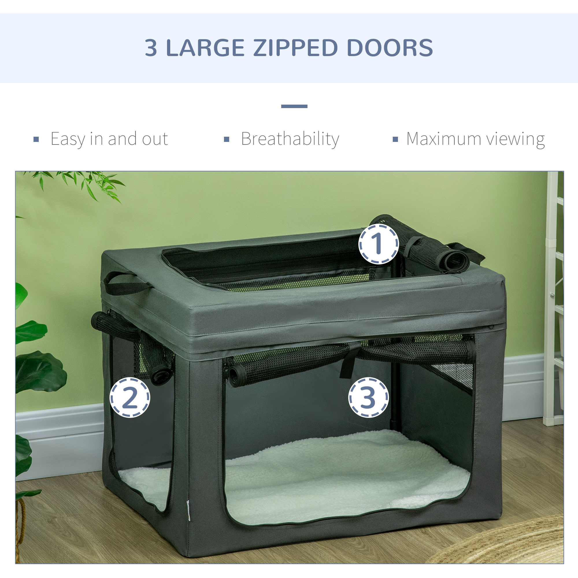 Struggle to travel with pets? With this PawHut fabric dog crate, you’ll struggle no more. It has two handles on top, so it’s much easier to carry it. Three doors for easy access – they’ll enter a spacious area, relaxing on a soft cushion whilst the air flows through the mesh window to keep them cool. It’s simple to store with the removable tube frame and comes with a bag, saving space. It can also be used at home, so pets have a cosy lounge.